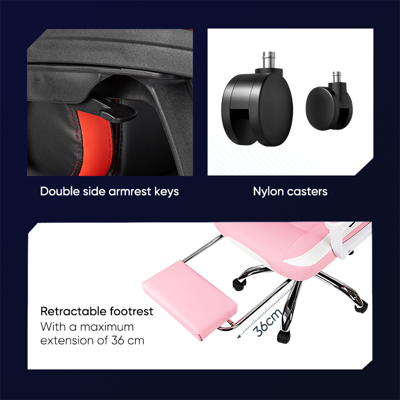 The chair is equipped with double side armrest keys for customizable armrest positioning, allowing you to find the perfect height and angle. A retractable footrest offers added relaxation, with a maximum extension of 36cm. The manual one-key adjustment feature enables you to easily modify the chair’s height and position.
