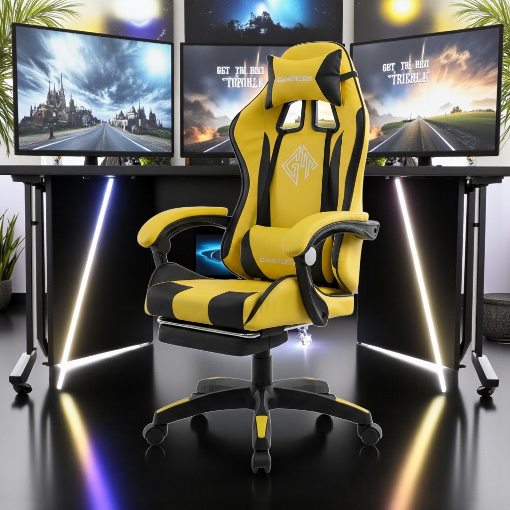 Reclining Ergonomic Gaming Chair with Adjustable Footrest & Lumbar Support – Black & Yellow